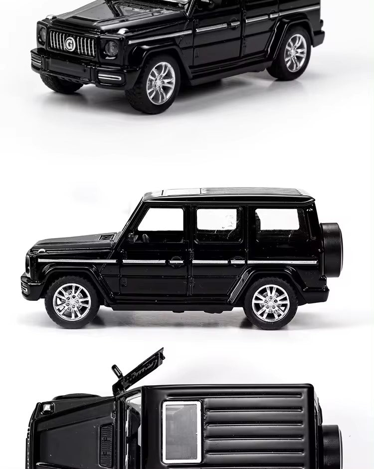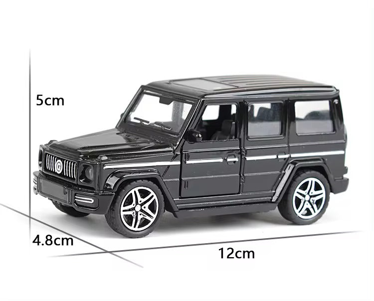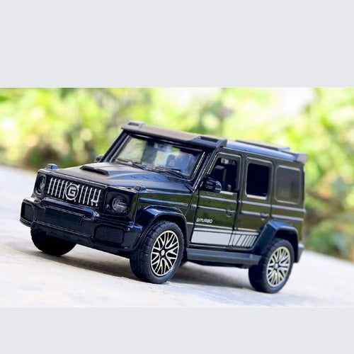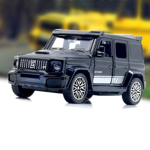 Introducing the G Wagon Metal Toy Car - Black Diecast Model with Openable Doors & Pull Back Action, a high-quality toy car that combines elegance, durability, and fun. Whether you're a toy car enthusiast, a parent looking for a perfect playtime gift, or a collector searching for realistic diecast models, this G Wagon is the ideal choice. Premium Build Quality and Design This G Wagon toy car is crafted from high-quality diecast metal combined with durable plastic components. The meticulous attention to detail ensures a realistic replica of the iconic G Wagon, making it a standout in any collection. From its glossy black finish to its finely replicated wheels and trim, the car provides a premium experience that looks as good as it performs. Realistic Openable Features One of the car’s most exciting features is its openable front doors, which provide a peek into the detailed interior. The seats, dashboard, and steering wheel are finely crafted to give the toy a lifelike feel. Kids will love opening and closing the doors, while collectors can admire the accuracy of this model's craftsmanship. Pull Back Mechanism for Endless Fun The G Wagon toy car features a smooth pull back mechanism. Simply pull the car back, let it go, and watch as it propels forward on any flat surface. This easy-to-use feature adds an element of fun and excitement, making it a perfect toy for kids to enjoy solo or with friends. It’s ideal for playtime races, indoor adventures, or as a conversation piece for display. Compact and Realistic Scale This toy car comes in a 1:32 scale, offering the perfect balance between portability and detail. Its compact size makes it easy for kids to hold and play with while still retaining enough detail to be appreciated by collectors. Whether displayed on a shelf, used in creative storytelling, or raced across the floor, this G Wagon is versatile and engaging. Perfect Gift for All Ages Looking for a thoughtful gift that appeals to kids and adults alike? The G Wagon Metal Toy Car is an excellent choice. Its durability and functionality make it ideal for kids aged 3 and above, while its sleek and detailed design will be appreciated by car enthusiasts and collectors. It’s perfect for birthdays, holidays, or even as a decorative piece for car lovers. Why Choose This G Wagon Toy Car? Durability: Made from premium diecast metal to withstand rough play. Realism: Attention to detail with opening doors and a true-to-scale design. Interactive Play: The pull back feature ensures hours of fun for kids. Versatility: Great for playtime, display, and collection purposes. Safe for Kids: Designed with smooth edges and non-toxic materials for safe play. In summary, the G Wagon Metal Toy Car - Black Diecast with Open Doors & Pull Back Action is a must-have for anyone who loves cars, toys, or collectibles. Combining durability, realism, and fun, this G Wagon toy car is perfect for endless hours of play or for showcasing in a collector’s display. Add it to your collection or gift it to someone special, and let the fun begin!